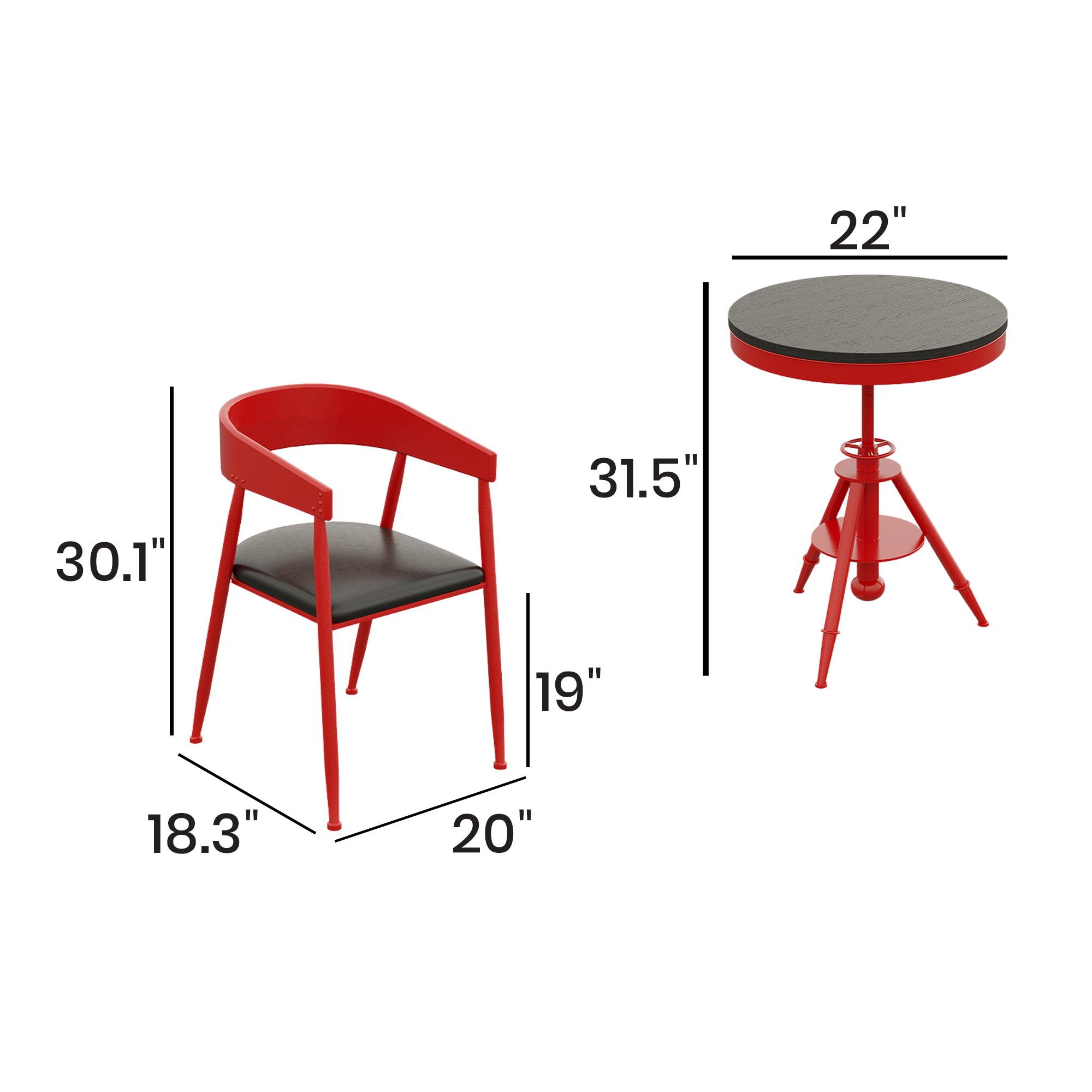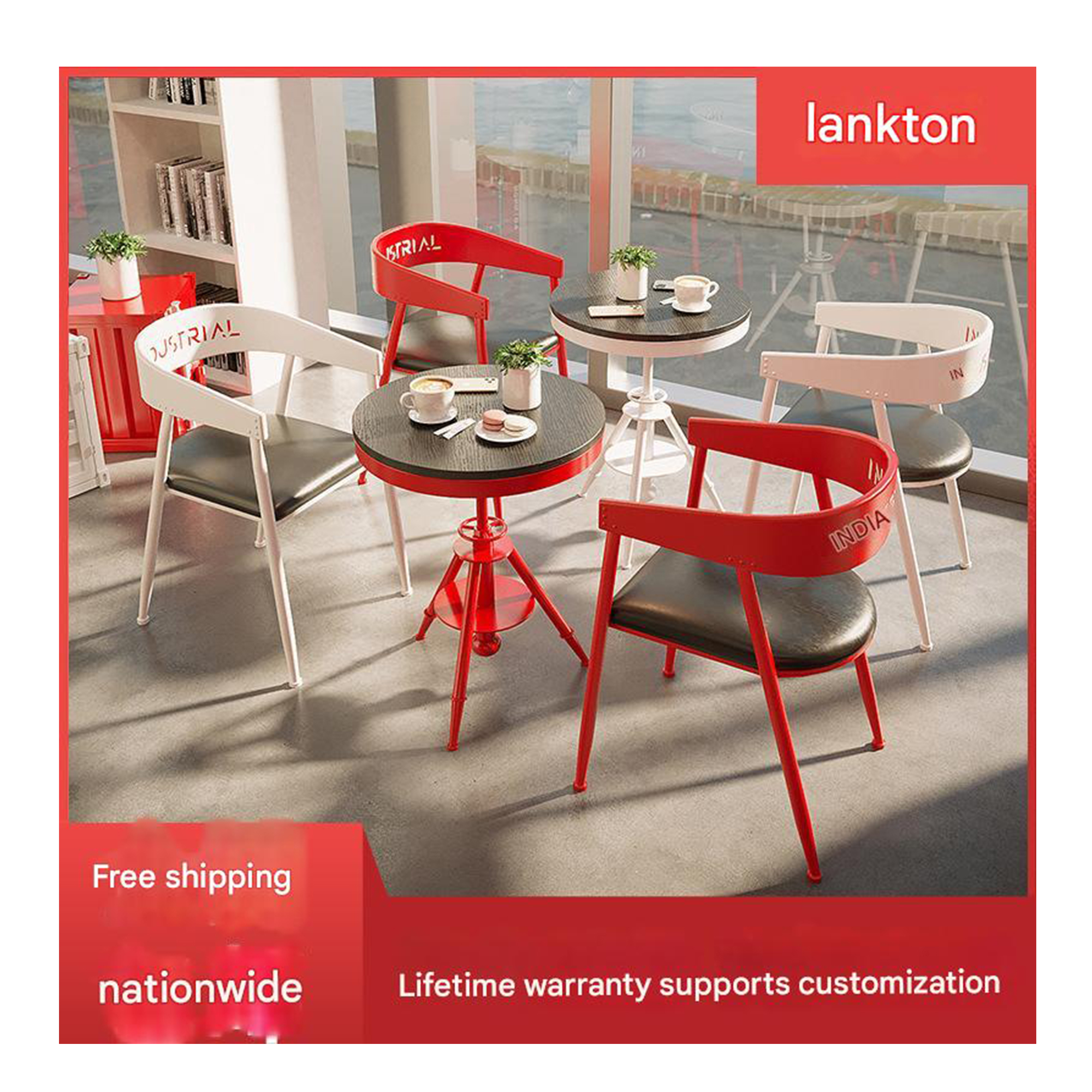The Colorful Industrial Style Bar and Club Table Set is a sleek and vibrant addition to any space, perfect for bars, clubs, restaurants, and milk tea shops. Crafted from durable iron, this set includes a sturdy table and matching chairs, designed to withstand high-traffic commercial environments. Its eye-catching industrial design, combined with a range of bold colors, adds a modern, edgy look to any venue. Ideal for creating a trendy and functional space, this set is perfect for night snack shops and casual dining areas, offering both style and practicality. The table measures 21.7" x 31.5" and chairs measure 19.9" x 18.3" x 30.1" x 18.9".